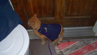 I decided I wanted to get snowed in with my friend Tim, since his boyfriend is away and I knew he'd want company. So I packed up kitten and camera, hoping for some good pictures of Loiosh playing in the snow.